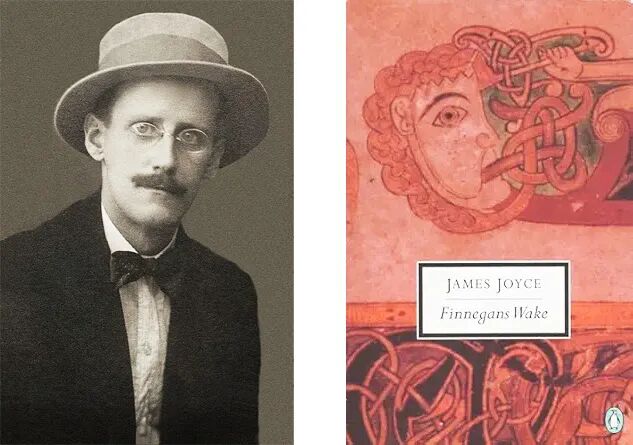 乔伊斯与《芬尼根的守灵夜》封面,图片来源:Bing