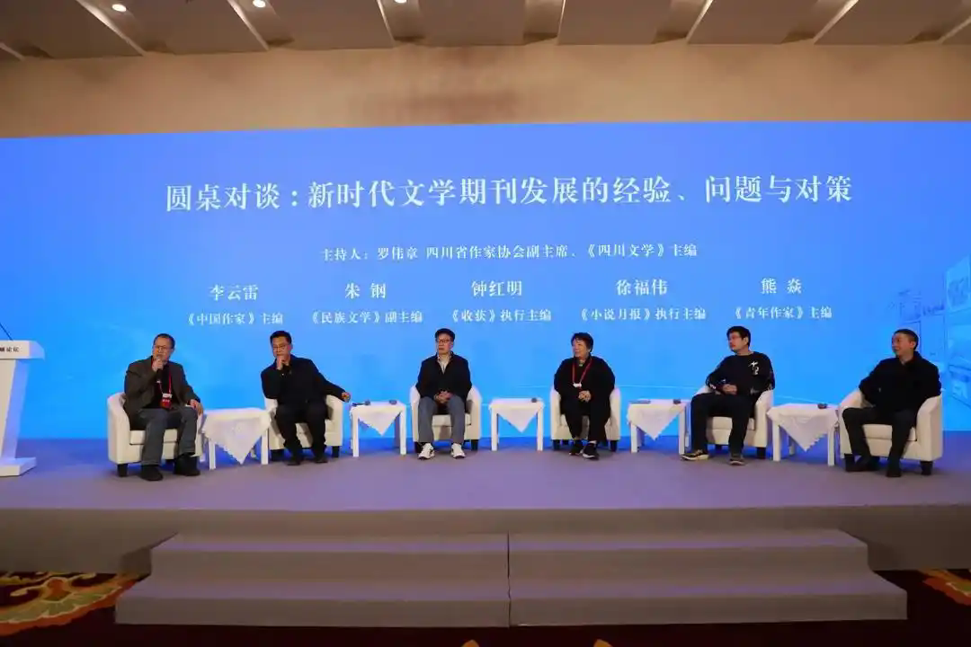 在由《四川文学》主编罗伟章主持的圆桌讨论中,《电竞竞猜》主编李云雷、《民族文学》副主编朱钢、《收获》执行主编钟红明、《小说月报》执行主编徐福伟、《青年作家》主编熊焱,就“新时代文学期刊发展的经验、问题与对策”展开深入对话。与会嘉宾结合办刊实践,分析当前文学期刊发展中的难点与机遇,总结创新经验,共同探索高质量发展路径。其中李云雷在讨论中特别提及新大众文艺、素人写作等前沿议题。