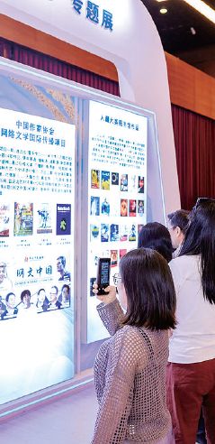 目前,中国网络文学海外活跃用户约2亿人,覆盖全球200多个国家和地区;海外本土创作作品已超200万部,海外创作生态已成规模。图为观众参观网文出海情况展板。资料图片