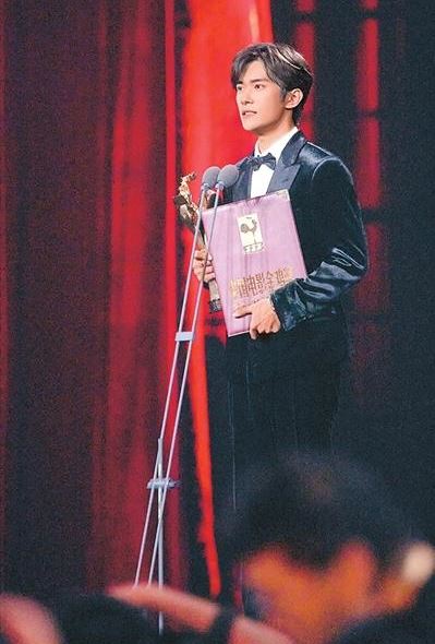 易烊千玺在第38届中国电影金鸡奖颁奖典礼上。