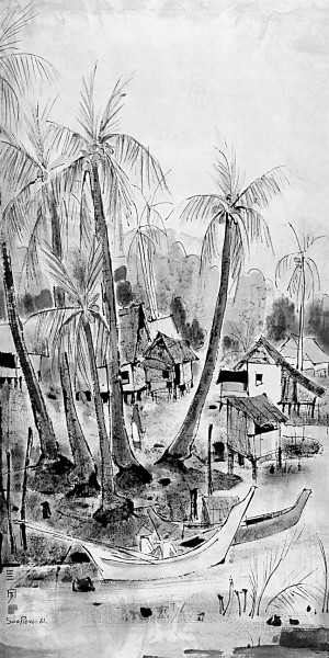 这些南洋本土艺术家的创作实践表明,中国画的笔墨语言不仅可以描绘黄山、漓江,亦能承载新加坡河、南洋老店屋、甘榜、亚答屋等异域风土。他们的跨文化艺术表达证明了水墨并非囿于中国本土,这正是中国传统文化自身所具有的强大辐射力与包容性的体现。如今重新审视这段“墨韵南渡”的历史,对于促进中国与东南亚地区之间的文明对话、艺术互鉴,具有深远的历史价值与显著的现实意义。