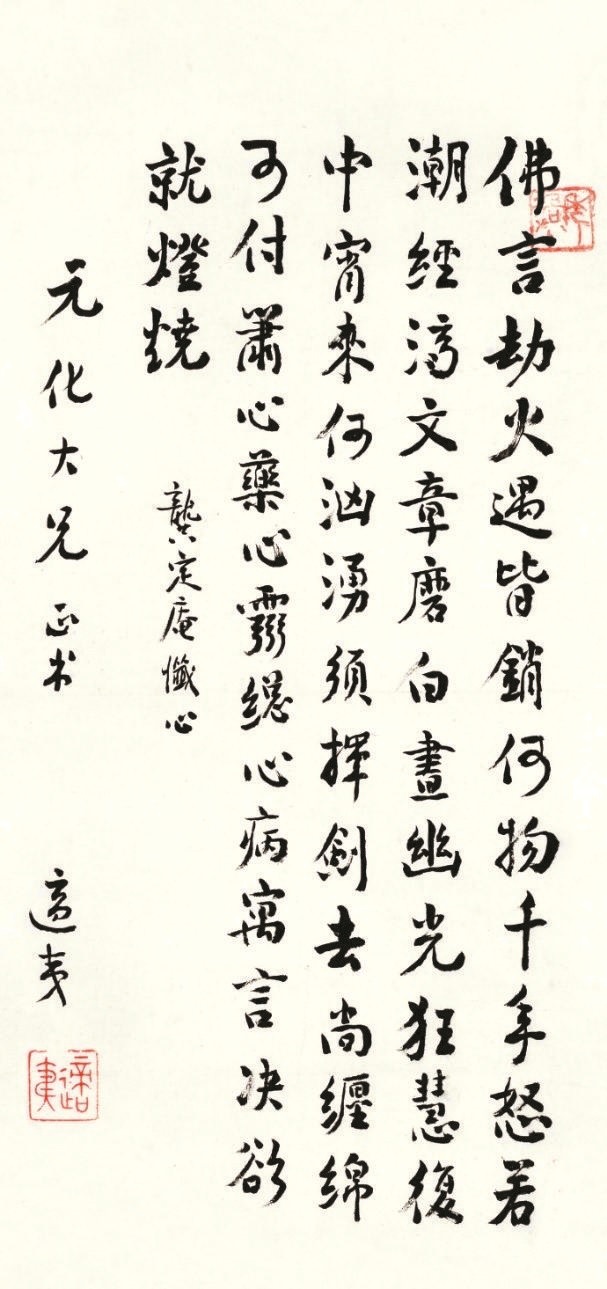 楼适夷晚年特别喜爱龚定庵的《又忏心一首》,并将它写给王元化、金常政等友人。其首联为:“佛言劫火遇皆销,何物千年怒若潮。”