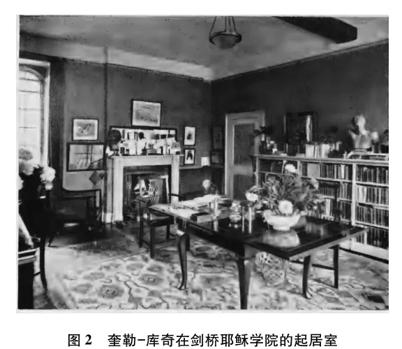 奎勒-库奇任职于剑桥大学耶稣学院(Jesus College),引文中的“皇家学院”有误。黄佐临常去听他讲莎士比亚和亚里士多德《诗学》,晚间上的一些小课,地点应在耶稣学院四方院里面奎勒-库奇作为院士(fellow)可以享用的套间(与白天的公开讲座不是同一个地方),而且听课的那八九个男生应该就是耶稣学院主修英国文学的学生: