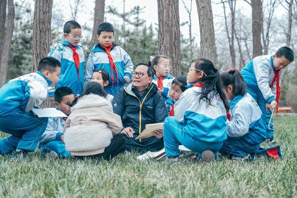 儿童文学作家雪野带领泾川县东街小学学生进行田野童诗创作。本文图片均由泾川县教育局提供