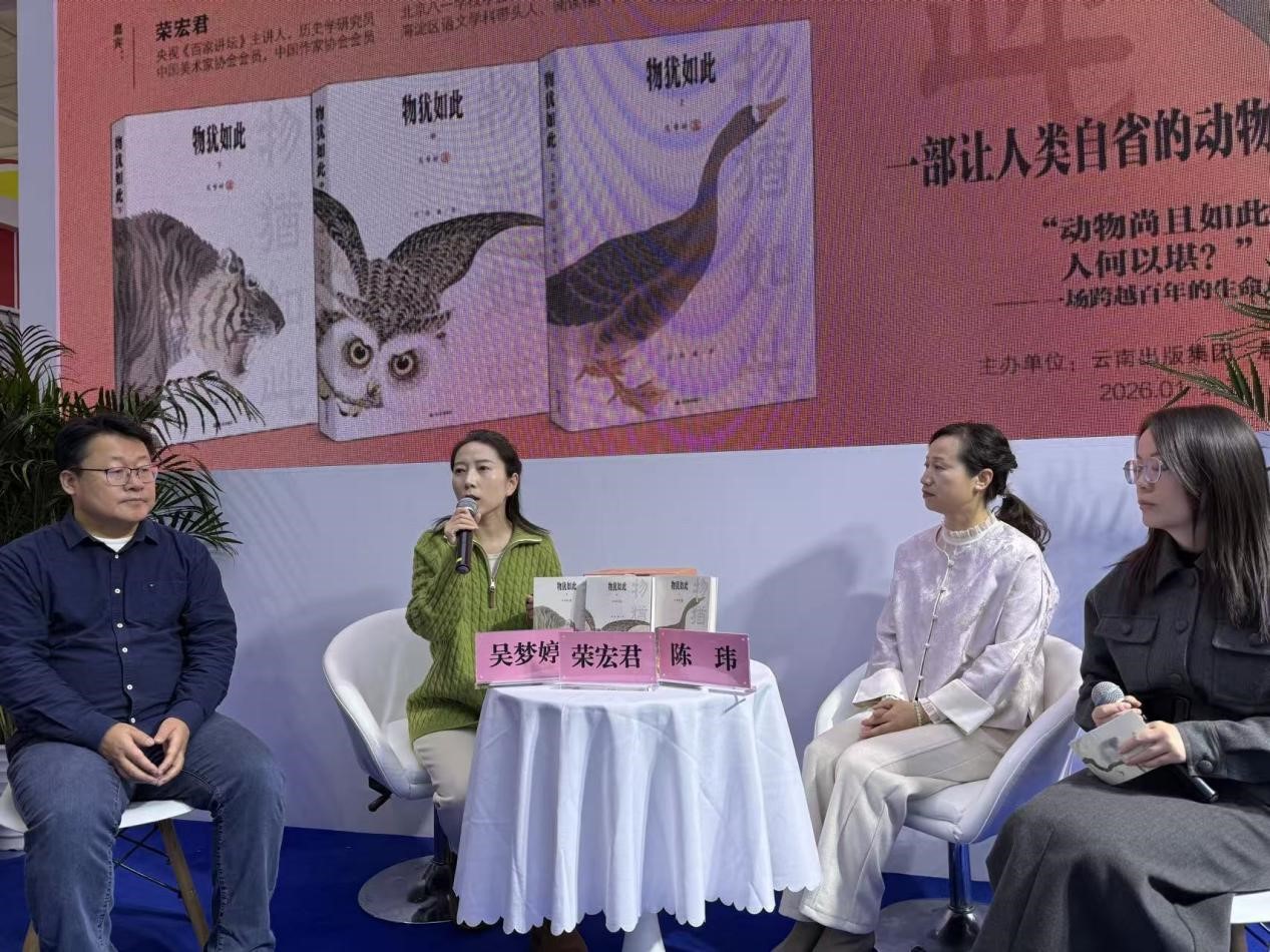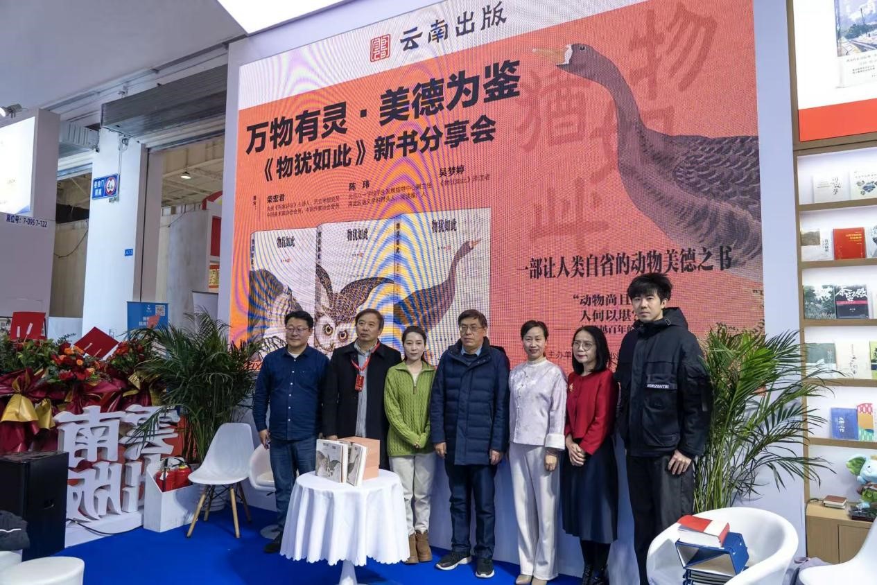 1月9日上午,以“万物有灵·美德为鉴”为主题的古代动物故事《物犹如此》新书分享会在第38届北京图书订货会举行。云南出版集团党委副书记侯勇,本书总策划、晨光出版社社长杨旭恒,副社长程舟行,本书译注者吴梦婷,央视《百家讲坛》主讲人、文史学者荣宏君,北京八一学校学生发展指导中心副主任、海淀区语文学科带头人陈玮,禹田文化传媒王娟、盛杰,人民日报出版社陈红,作家屈旷等参加本次分享会。