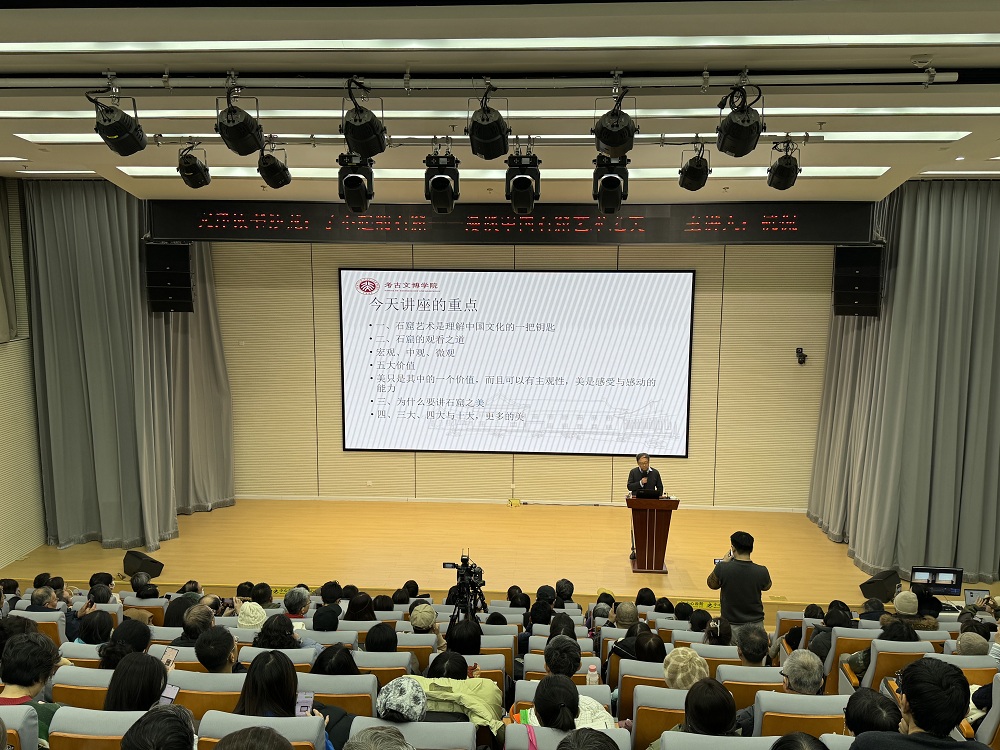 分享会现场座无虚席,杭侃以深厚的学术积淀与生动的讲述方式,将石窟艺术的厚重历史娓娓道来。他指出,石窟艺术是理解中国文化的一把钥匙。随后,从“三观”“五维”阐述石窟的观看之道,所谓“三观”分别为宏观选址、中观定位、微观营造,而“五维”分别为历史、艺术、科学、文化、社会五个维度。