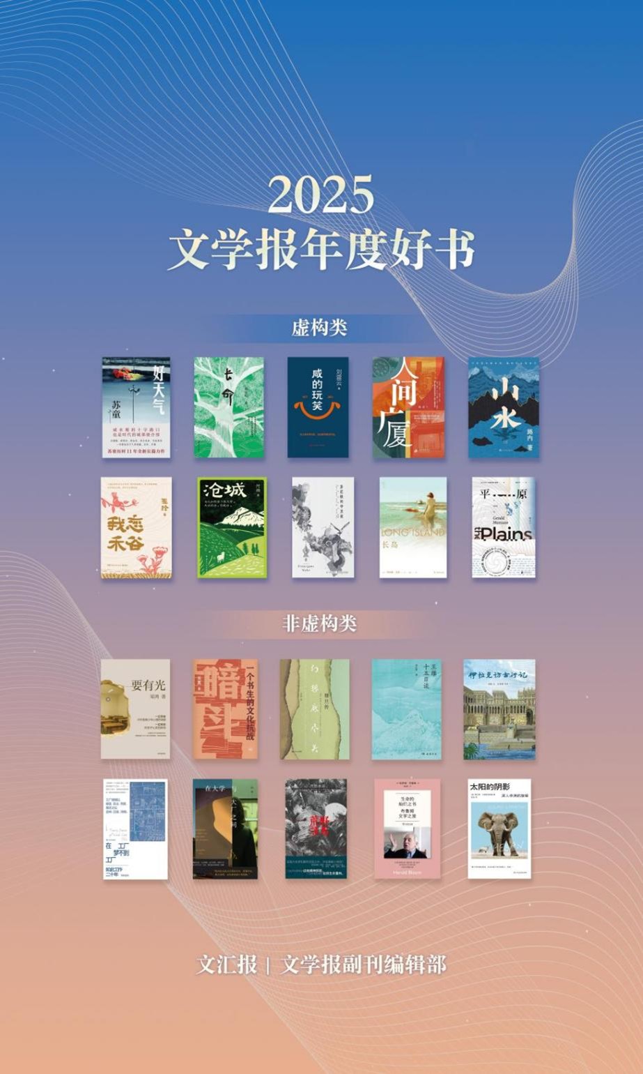 1月18日,2025文学报年度好书在上海报业集团发布,10部虚构类作品与10部非虚构类作品上榜。