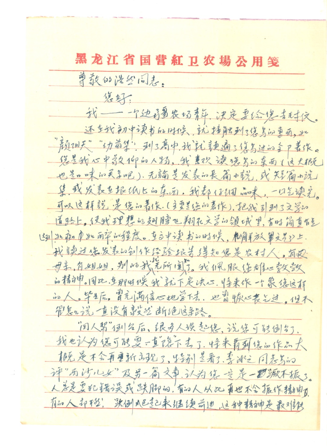 高中刚毕业,我作为粉碎“四人帮”后的第一届大学生,到杭州大学中文系学习来了。这使得我有机会拜读了您的所能找到的全部作品,从《新媳妇》到《蜜月》到《金光大道》,我特别喜欢您的几个短篇集子。您在短短的篇幅里塑造了许许多多可敬可爱的“新人”。这些人都是血肉丰满,栩栩如生的啊。当前发表在那些刊物上的作品,能有几篇达到您的二十年前的水平呢?
