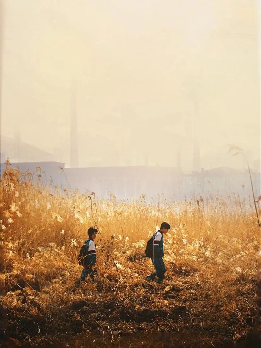 冷暖对比的色调泾渭分明地区隔了现实与记忆。李默成年后的现实场景以冷峻的蓝调为主。雪后难行的公路,萧瑟的树林,逼仄昏暗的小饭馆……无声地诉说着人物岌岌可危的心理状态;与之形成鲜明对比的,是年少回忆泛着橙红的滤镜,工厂里巨大的红色烟囱,公共浴室潮湿氤氲的蒸汽,停电后跳动的烛光……小说中陷入癫狂的安德烈说,“那是最好的时光”,在电影中,精神异常发生在李默身上,当他回忆往事,笼罩在近乎梦幻光线里的一切事物,显然是他精神世界的主观反映,对身处现实的隔阂加剧了对失落理想的追忆。当冷暖两条线索在电影的尾声终于“相遇”,蓝调世界里的成年李默不顾一切推开厂房大门,一大一小两个身影沐浴在光里,红色大门前的安德烈恢复了年少记忆里熟悉的样子,微笑着说:“你怎么才来。”冷暖色调的交汇,喻示着李默不再逃避,选择与内心深处的伤痛告别后继续前行了。