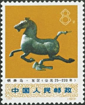 ÐÂÖйúÓÊÆ±ÉÏ×îÔç³öÏֵġ°ÎÄÎïÂí¡±Ô´×Զػͱڻ¡£1953Äê9ÔÂ1ÈÕ£¬Óʵ粿·¢ÐÐÁËÒ»Ìס¶Î°´óµÄ׿¹ú¡·ÌØÖÖÓÊÆ±£¬Ö¼ÔÚÏò¹ã´óÃñÖÚ½éÉܶػÍÎÄÎï¡£ÕâÌ×ÓÊÆ±¹²4ö£¬ÆäÖеÚһö±ã³ÊÏÖÁË¡°Âí¡±µÄÐÎÏó¡£